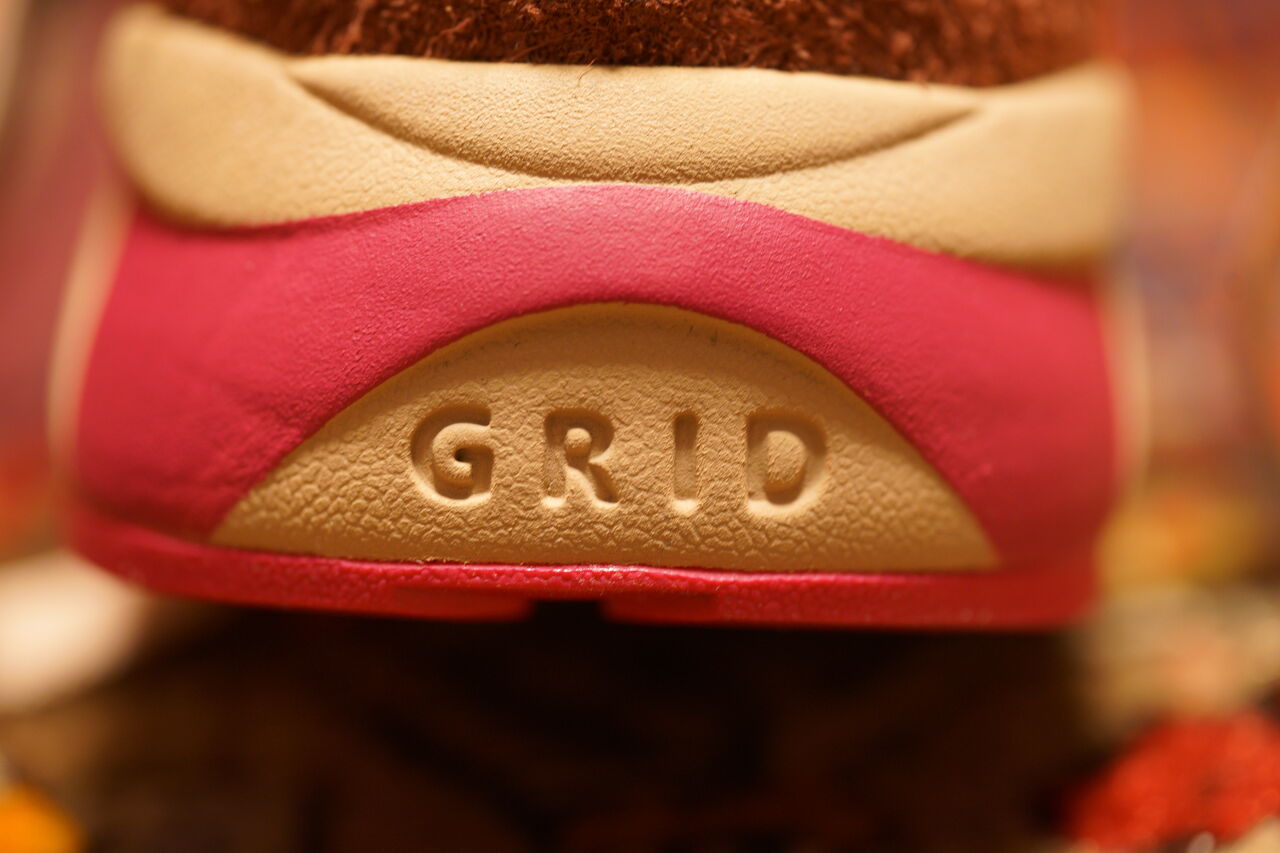 ヒール部分にモデル名にもなっている「グリッド」と呼ばれるクッションが使用されているんだけど、クッション性はアシックスのゲルに近い感じ。