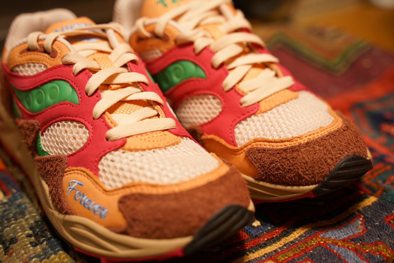 このモデル完全にノーマークだったのですが、スニーカーウォーズかビリーズのサイトのどちらかで見て、色使いがめちゃくちゃカッコ良くて「うぉ!これカッケェ!」ってことで買いに行こうと思ったのですが、発売日がまさかの平日。ナイキとかアディダスならこういうコラボモデルは土日発売とか気を利かしてくれそうですが、サッカニーはそういう顧客に媚びたスタイルは取らないのです。「買いたきゃ平日に会社休んでこい」こういう強気な感じ。