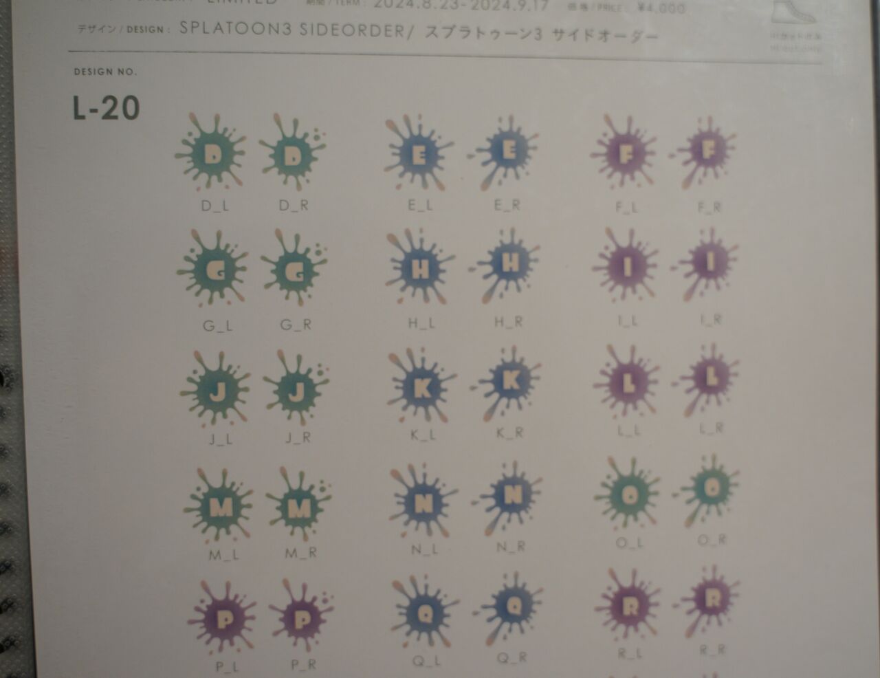 ・右足と左足のカスタムは別々にできるので左足をインク柄。右足をアルファベットにするのも可能。