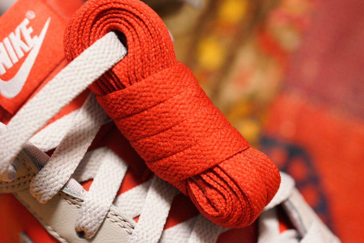 交換用のシューレースはレッドが付属。UNLVのシューレスはなんかラメ風の模様が入っていたんだけど、これはベーシックなコットンシューレースと言う感じ。ダンクのシューレースはこういうので良いんだよ。こういうので。